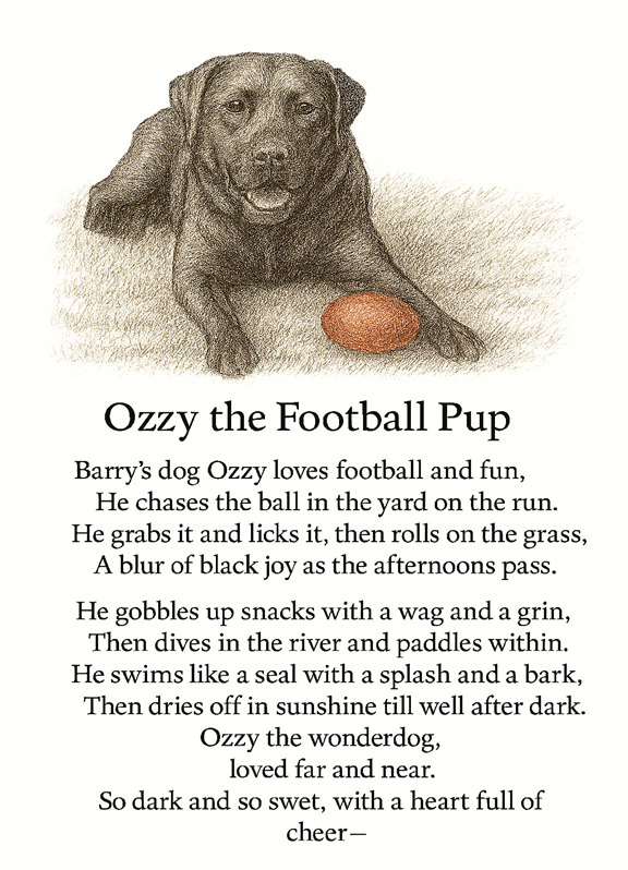 Send me your pets photo and a few words of the funny things they do and name. I will create a poem on a plaque