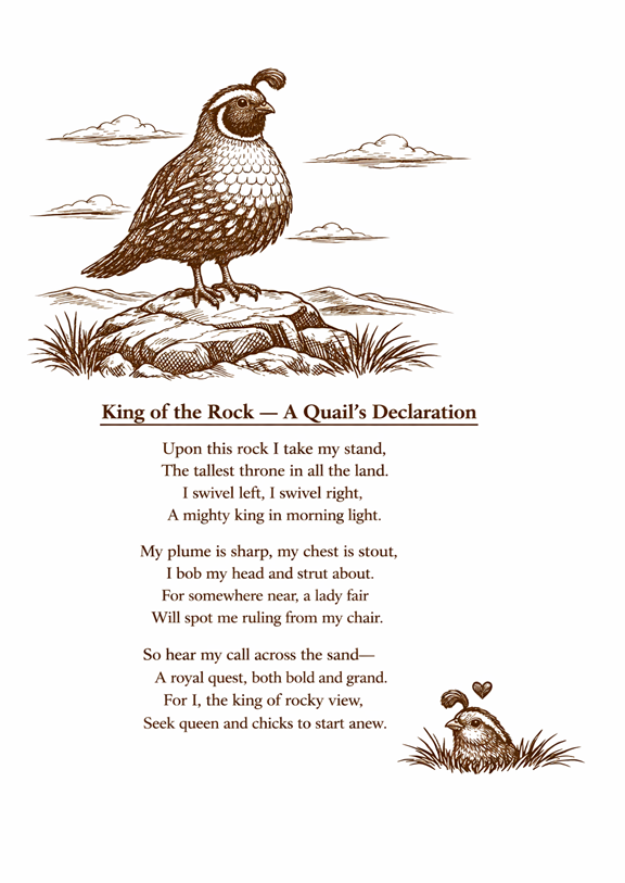 He hums his anthem soft and clear,